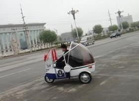 这种车上路是否安全?对于这一疑问,他说,转弯的时候最好开20码,只要开慢点,一般不会翻车。