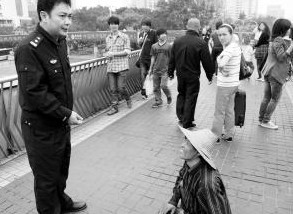 “刚刚在小寨百盛过街天桥上,一小伙问乞讨老大娘索要钱财,大娘给了他一块,小伙嫌太少,就抢乞讨大娘的钱,刚好被民警碰了个正着。离开时,小伙正跪在乞讨大娘面前道歉。”昨日上午9时50分,有网友发布微博说。记者在微博照片中看到,一身着浅蓝色上衣、牛仔裤的年轻男子跪在地上,一名乞讨老大娘则坐在地上,似乎在收拾包袱。到底发生了什么?