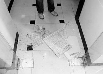 楚天都市报讯 (记者刘光明宝)两位七旬老人,一前一后走出小区电梯时,竟然先后被两块脱落的瓷砖相继砸中,惊出了一身冷汗,所幸并无大碍。