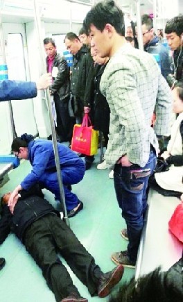 本报讯(记者杨梅 通讯员杜莉萍)昨天下午,轨道交通1号线上发生令人咋舌一幕:为争抢座位,两个彪悍的年轻人,竟打倒了一位70多岁的老爹爹。目前,两名打人的壮汉已被送往轻轨派出所。