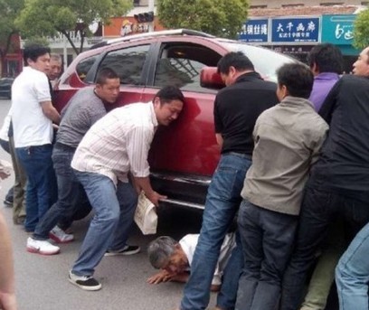 众人将老人从车底救出