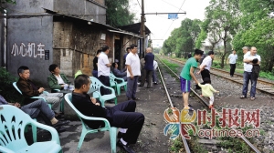 发生意外的附近是一个简易房,里面摆放了5张桌子,有10多个中老年人坐在一起喝茶聊天。房子外面,距离铁轨一米远的地方则站着不少村民,有的手上端着茶杯,有的手里捏着香烟。因为地方实在太窄了,所以不少人干脆就站在铁轨中间来,“没得危险,火车少,来了让就是。”一个大叔这么解释。对于前一天发生的意外,大家却似乎都不愿意多谈,有个男子就直接告诉我们:“你们来看这些人走铁路有啥子意思嘛?有没得危险我们自己还不晓得哦?”