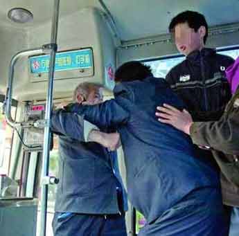 同车的乘客看到该男子确实太野蛮,态度极其恶劣,纷纷给予指责,其中有一名年纪较高的老人也加入劝架行列,尽管有两人在劝架,但男子似乎没有住手的意思,还对劝架的老伯拳打脚踢。这时又加入了一名身材魁梧的乘客予以拦阻,最终陈师傅与几名乘客一道将男子制服。随后,警察将该男子带走。