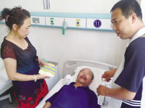 昨日13时许,77岁的王承山躺在抚顺市矿务局总医院病床上,面部大面积瘀血、嘴部高高肿起,右腿有明显的“鞋印”。