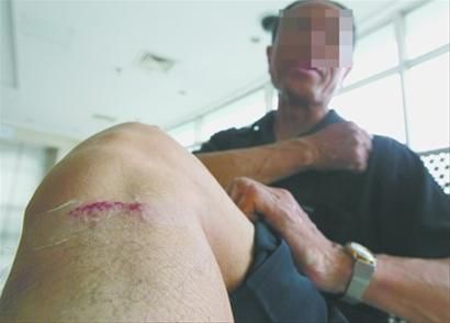 昨日下午,在沈阳市盛京医院滑翔院区,老赵(化名)向记者讲述了事情的经过,腿上还留着8月5日被打伤的一条口子。