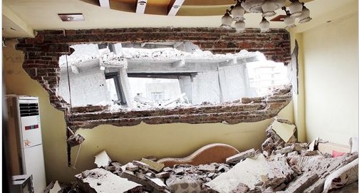 当天,工人操作一台铲车对这栋4层楼房进行拆除。突然,楼房“哗”地一下发生了倾斜。紧挨着这栋楼的是一排平房,有一间修车行。车行的一位工人事发时正在店门口做事,突然听见一声巨响,他赶紧逃出。他跑了几步后回头一看,隔壁的这栋4层楼房只剩3层,而且严重倾斜。