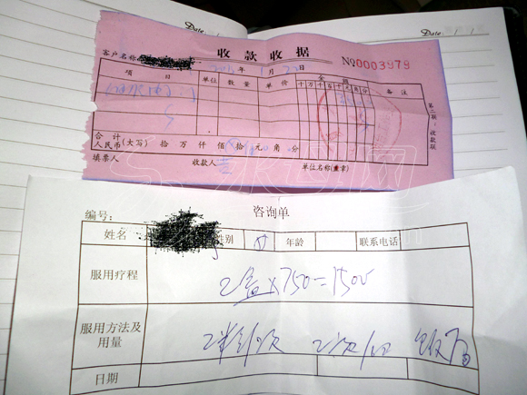 记者仔细观察,看到工作人员手中的体检结果印有“香港皇家医院血液分析报告单”的字样,如果有哪位老年人被查出身体异样,旁边有“癌细胞基因检测室”的工作人员负责开具收据和咨询单,要求老年人购买保健品。