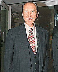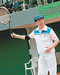 何鸿燊每年都会与搭档组队,参加中华游乐会举行的150岁元老组网球公开比赛,已经连续获得3年冠军的何鸿燊,大赞搭档打得好,其实他自已的球技也是元老组中首屈一指,特别是扣球和底线抽击都打得有板有眼。