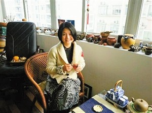 在一个阳光明媚的春日,记者走进了唐印的办公室,两间屋里摆满了百余种茶叶和琳琅满目的各式茶具。唐印去世界各地淘来的艺术品都挤在窗台边晒太阳,一只招财猫对着记者热情地“微笑”。唐印在阳台洒满春光的藤桌椅上泡茶,随着水从壶嘴流出,绿茶的叶子舒展开来,她的故事也慢慢翻开。