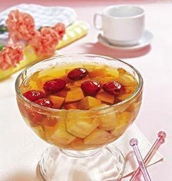 调制方法:将苹果和梨子切块,连同其他材料煮成汤。