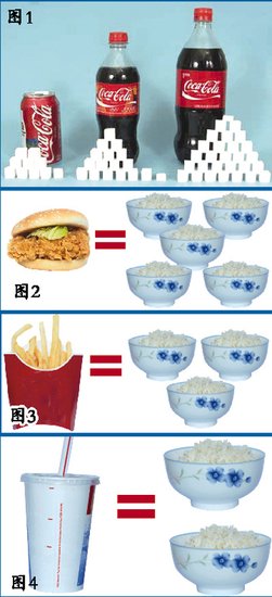 一听可乐含糖量等于10块方糖,一份汉堡的能量等于5碗米饭!