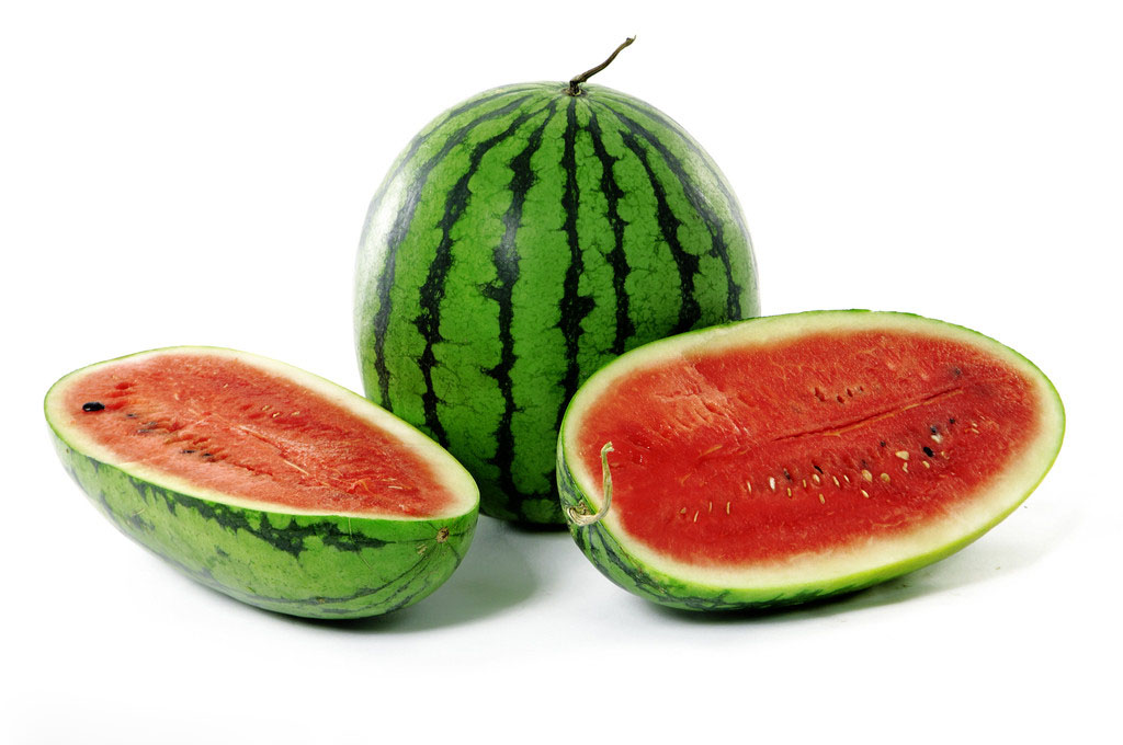 夏令主要水果之一。中医常以西瓜皮(又称西瓜翠衣)、西瓜瓤及西瓜霜(将芒硝置入西瓜中,渗出的浆汁形成的结晶)入药。性味甘,寒。入心、胃、膀胱经。功效解暑除烦,生津止渴,利尿降压。可用于夏天热盛,汗出伤津,心烦口渴,小便短少。对胃热牙痛、高血压等也有一定疗效。