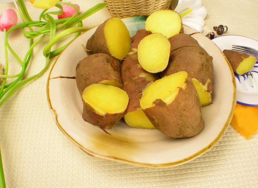 红薯。生红薯切开后,切口会分泌白色黏液,这种黏液具有防便秘的作用。需要注意的是,红薯最好别空腹吃,否则容易引起烧心。