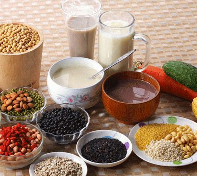 黄豆:黄豆性平味甘,有健脾益气的作用,脾胃虚弱者宜常吃。用黄豆制成的各种豆制品如豆腐、豆浆等,也具有药性:豆腐可宽中益气、清热散血,尤其适宜痰热咳喘、伤风外感、咽喉肿痛者食用。