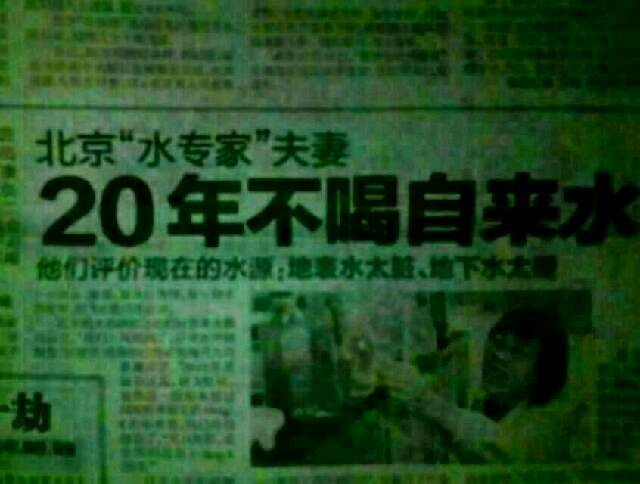 丈夫在国家发改委公众营养与发展中心饮用水产业委员会工作,妻子担任北京保护健康协会饮用水专业委员会负责人,58岁的妻子说:“我们可能是北京最会喝水的家庭,但是我们已经二十年不喝自来水了”上周刚刚检测了自来水中硝酸盐(以氮计)的指标,已经严重超标达到了每升 九点多 毫克。