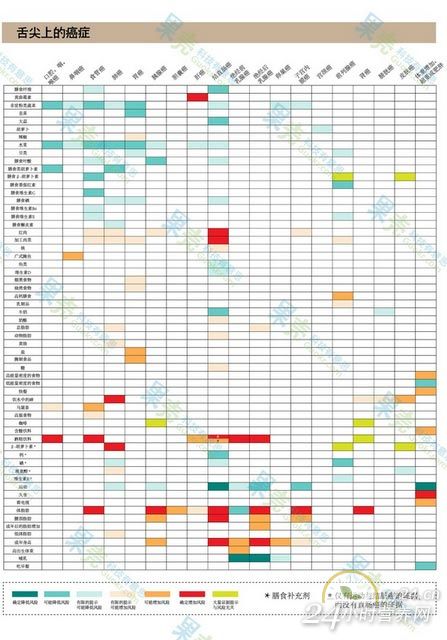这份表格是根据大量多样本量的研究结果而制作的,显示的是不同的食物或生活方式对罹患癌症的影响。对个体而言,吃了确认增加癌症风险的食物,并不意味着你一 定会罹患癌症;