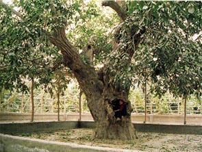 新疆的和田县是盛产核桃的地方,在那里有一株具有500年树龄的核桃树,人称“核桃王”。杆粗枝壮,高大繁茂,屹立于和田市15公里的巴格其乡路旁,它的树冠覆地面积达半亩之广。一般每年结核桃4000多个,如果按300年结果量计算,它已产核桃120万个,合17000公斤。这棵核桃树已经中空,树洞中可同时钻进四五个人。