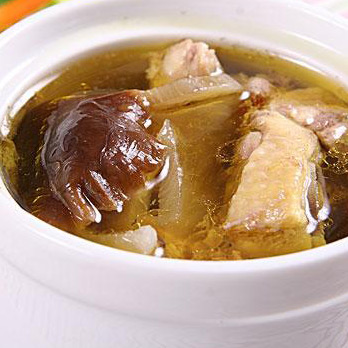 原料:嫩母鸡肉100克,党参30克,黄芪45克,香菇30克,生姜、料酒、食盐适量。