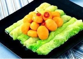 做法:栗子煮至半熟,对半切开;大白菜洗净,切块;锅内放入花生油烧热,下栗子略炸后,捞出沥油;锅内留少许底油烧热,下白菜略炸,放入栗子,加清水、酱油、精盐、白糖,用旺火烧沸,再改用小火烧至熟透;最后用湿淀粉勾芡后起锅。