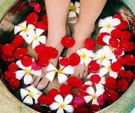 泡脚水要没过脚背,选高些的木桶,以使热水的温度放松脚部及小腿。