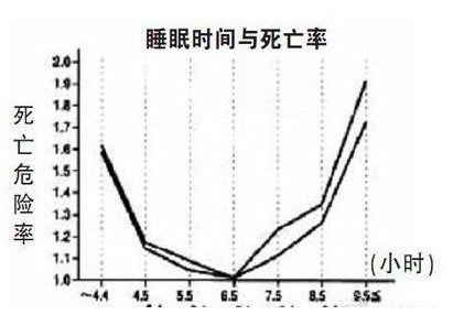 这几天刷微博,你是不是也看到了那张“睡眠时间”与“死亡危险率”的关系图?图表显示,睡眠时间在6.5小时左右,死亡率最低;少于4.4小时或高于9.5小时,死亡危险率会成倍增加。