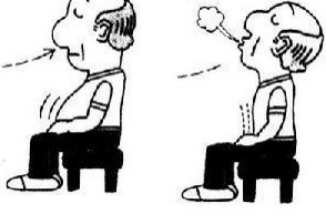 6.强烈呼吸:先吸足气略憋片刻,然后将嘴噘成圆形向外急速呼气3次。其动作似吹口哨一般。