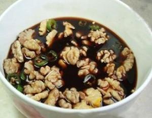 核桃仁不但营养价值非常高,还可健胃、补血、润肺、养神、润肤黑发。但美中不足的是,核桃仁中油脂含量高,吃多不好消化。醋能够消食开胃,还能解毒,不妨做一道醋泡核桃仁,既好吃又不腻。