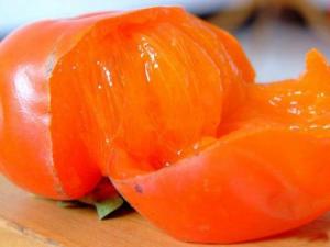 成熟的柿子皮中含有大量的鞣酸,吃起来会感觉涩涩的。鞣酸在胃酸的作用下,会与食物中的蛋白质起化合作用生成沉淀物,即柿石。这种物质易引起上腹部不适、饱胀、食欲不振等症状。因此,不要吃未去皮的柿子,也不要空腹吃柿子。