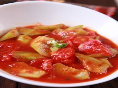 做法:丝瓜洗净去皮,切小片西红柿洗净切小块备用。粳米洗净放入锅内,倒入适量清水置火上煮沸,改文火煮至八成熟,放入丝瓜、葱姜末、盐煮至粥熟,放西红柿、味精稍炖即成。