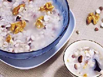 配方:核桃仁五十克、大米六十克。功效:补肾,健脑,通淋。