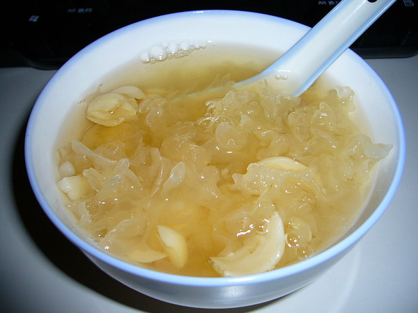 银耳15克,百合10克,冰糖适量,加水小火久炖后服,可治干咳。