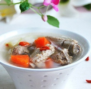 将猪肚洗净,去油脂,放入沸水中焯后去水,晾干水后备用。将白术、煨姜、胡椒放入猪肚内,缝合猪肚,猪肚外以针刺小孔,放入清水,大火煮沸,小火煮2小时,放入精盐调味。捞出猪肚,切块,喝汤吃猪肚。有温中散寒,补脾益气的功效,尤其适用于素体脾胃虚寒的人食用。
