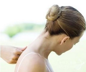 3.颈部按摩:轻柔酸痛处,同时轻轻旋转头颈部,按摩后可做局部热敷,能起到改善局部血液循环、缓解肌肉紧张、解除疲劳的作用。
