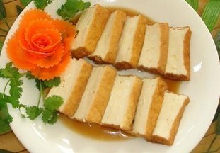 蛋黄含有很丰富的维生素D,因此鲜美滑嫩的蛋黄豆腐就是补钙的优秀菜肴。动物内脏,如肝脏,血液中的维生素D含量也很高,所以将白豆腐和血豆腐一起做成“红白豆腐”也非常理想。另外,鸡胗、猪肝等动物内脏也对增加豆腐的钙吸收有很好的作用。