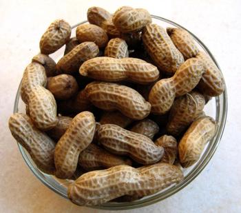 2.在煮花生之前,把花生前面的一头,用拇指和食指轻轻按一下,花生壳就裂开一个小口子,这样煮的时候汤汁的味道就容易的到里面去了,花生仁就能很快入味。