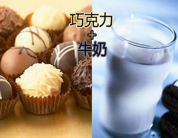 【牛奶与巧克力易发生腹泻】牛奶含丰富的蛋白质和钙,巧克力则含草酸,若二者混在一起吃,牛奶中的钙会与巧克力中的草酸结合成一种不溶于水的草酸钙,食用后不但不吸收,还会发生腹泻、头发干枯等症状,影响生长发育。