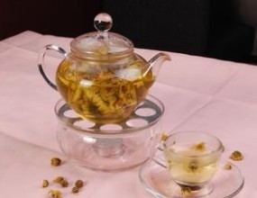 菊花10克,枸杞子30克。将枸杞子加3~5杯水煮沸10分钟,然后放入菊花再煮2~3分钟,过滤取汁,装入保温瓶,分3~4次1日饮完。养生健康网lyse.cn认为菊杞茶含丰富的维生素A,可预防和治疗各种眼病,还可防治高血压、冠心病,最适宜于老年人饮用。