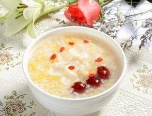小零嘴:糯米百合甜杏粥。糯米100克,百合30克,甜杏仁20克洗净同煮为粥。