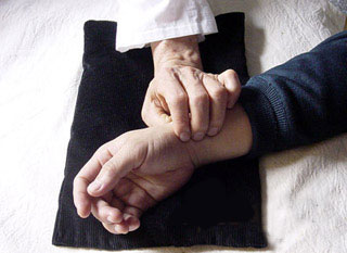 正确的摸脉方法:平躺安静5分钟后,伸开左臂或是右臂,将另外一只手的食指、中指、无名指搭按在伸开手臂的腕后桡动脉所在部位(手臂与手腕关节内侧连接处),或者是将一手搭在另一手手腕处的拇指一侧,稍加寻找就会找到清晰的脉搏。保持正常均匀呼吸,计数一分钟。以下几种情况需要摸摸脉搏。
