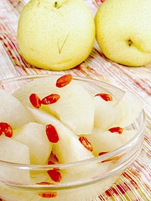 梨中含有蛋白质,脂肪,糖,粗纤维,钙、磷、铁等矿物质和多种维生素,具有降低血压、养阴清热的功效。患高血压、心脏病、肝炎、肝硬化的病人。而煮熟的梨有助于肾脏排泄尿酸和预防痛风、风湿病和关节炎。梨还具有润燥消风、醒酒解毒等功效,因此在春季降肝火的食疗中当属最佳食物。梨水食疗法:川贝母10克捣碎成末,梨2个,削皮切块,加冰糖适量,清水适量炖服。