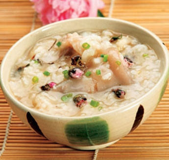 食材:桃花(干品)1克,净猪蹄1只,粳米100克,细盐、酱油、生姜末、葱、香油、味精各适量