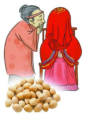 古代有这样的婚俗:新娘出嫁时,母亲会塞几个白果给她,让其在轿上吃。女儿不解其意,以为白果拿来当零食吃,并且还责怪当母亲的太小气,也不多给点。