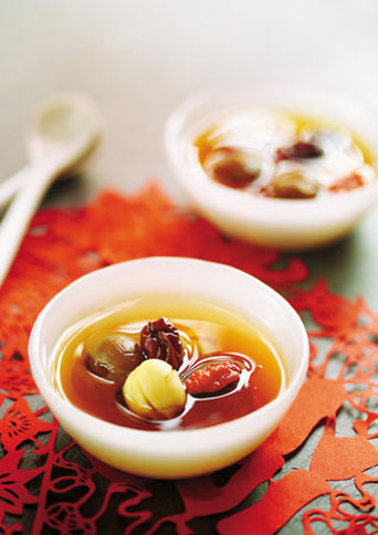 材料:白莲子200克,蜜橘150克,白糖150克,白菜叶3片,淀粉适量。