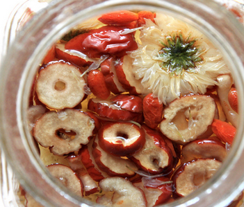 取红枣50g、粳米100g,菊花15g。一同放入锅内加清水适量,煮粥,待粥煮至浓稠时,放入适量红糖调味食服。此方具有