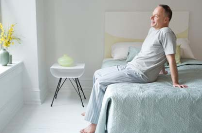 正确起床一分钟:做完以上动作以后,可以缓缓起身离床;正确的起床姿势是,先将身体由卧位变为半卧位,再慢慢转身,臀部、大腿坐至床边,双手支撑床面,双小腿下垂,然后全身下地,直立,头颈部肌肉缓缓绷紧。