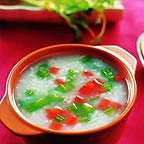 干菊花(去蒂)、山楂片各9-12克,研为粉末。以粳米45-60克,冰糖少许,加水500毫升,煮至米开而汤未稠时,调入菊花、山楂末,然后改文火煎煮片刻,粥稠火停,盖紧焖5分钟,待稍温服食,每日1-2次。高血压病或合并高脂血症、冠心病者均可服用,冬季停服。