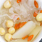 银耳:银耳有“菌中之冠”的美誉。它既是营养滋补佳品,又是扶正强壮的补药。银耳可以滋阴润肺,但与此同时它的粘性较大,使人体的痰不容易咳出。如果是单纯无痰咳嗽,用银耳润肺效果自然不错,若是有痰,则不适宜用银耳了。此外,将银耳与香蕉百合一起煮成羹食用,具有养阴润肺、美容、生津通便的作用。