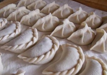 7、擀开,包入馅儿,对折,中间捏合,两端向内收一下再捏紧,最后把边缘捏上波浪边。
