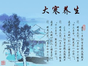 《授时通考·天时》引《三礼义宗》:“大寒为中者,上形于小寒,故谓之大……寒气之逆极,故谓大寒。”这时寒潮南下频繁,是我国大部地区一年中的寒冷时期,风大,低温,地面积雪不化,呈现出冰天雪地、天寒地冻的严寒景象。大寒时节,中国南方大部分地区平均气温多为6℃至8℃,比小寒高出近1℃。“小寒大寒,冷成一团”的谚语说明大寒节气也是一年中的寒冷时期。