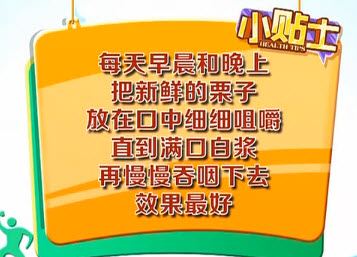本期主题是栗子里的养生秘诀,嘉宾是吴大真,主要介绍栗子的养生功效,应该少吃栗子的人群,生吃栗子可以补养前列腺,熟吃栗子可以改善小儿脾虚,生栗子内膜的去皱功效等相关内容。